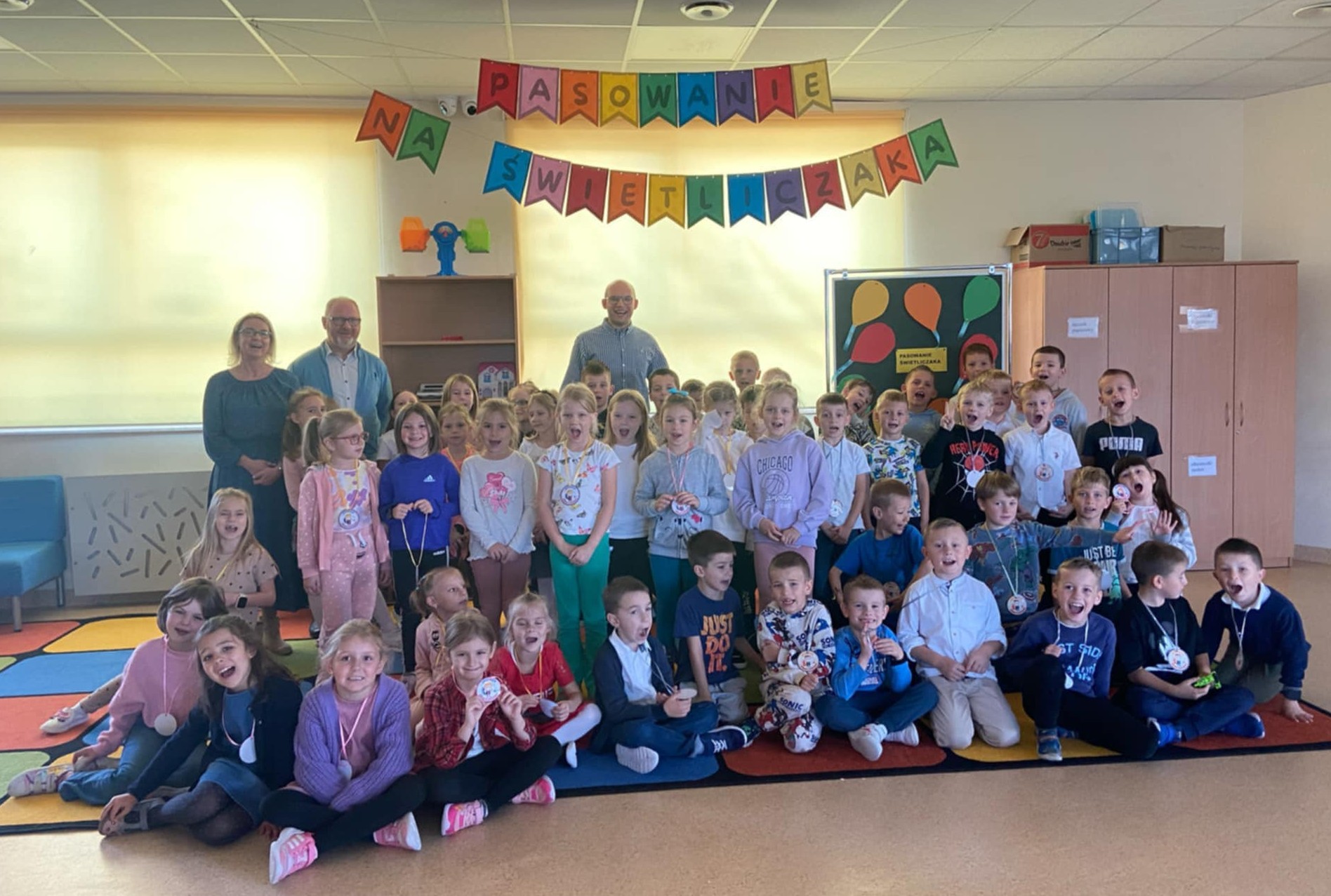 Świetlica szkolna rozpoczęła prace pełną parą. Klasy I przygotowywały się do pasowania na Świetliczaka, które odbyło się 18 października. Dzieci piosenką „Witajcie w naszej bajce” zaprosiły siebie nawzajem do uczestniczenia w pięknej, świetlicowej przygodzie.