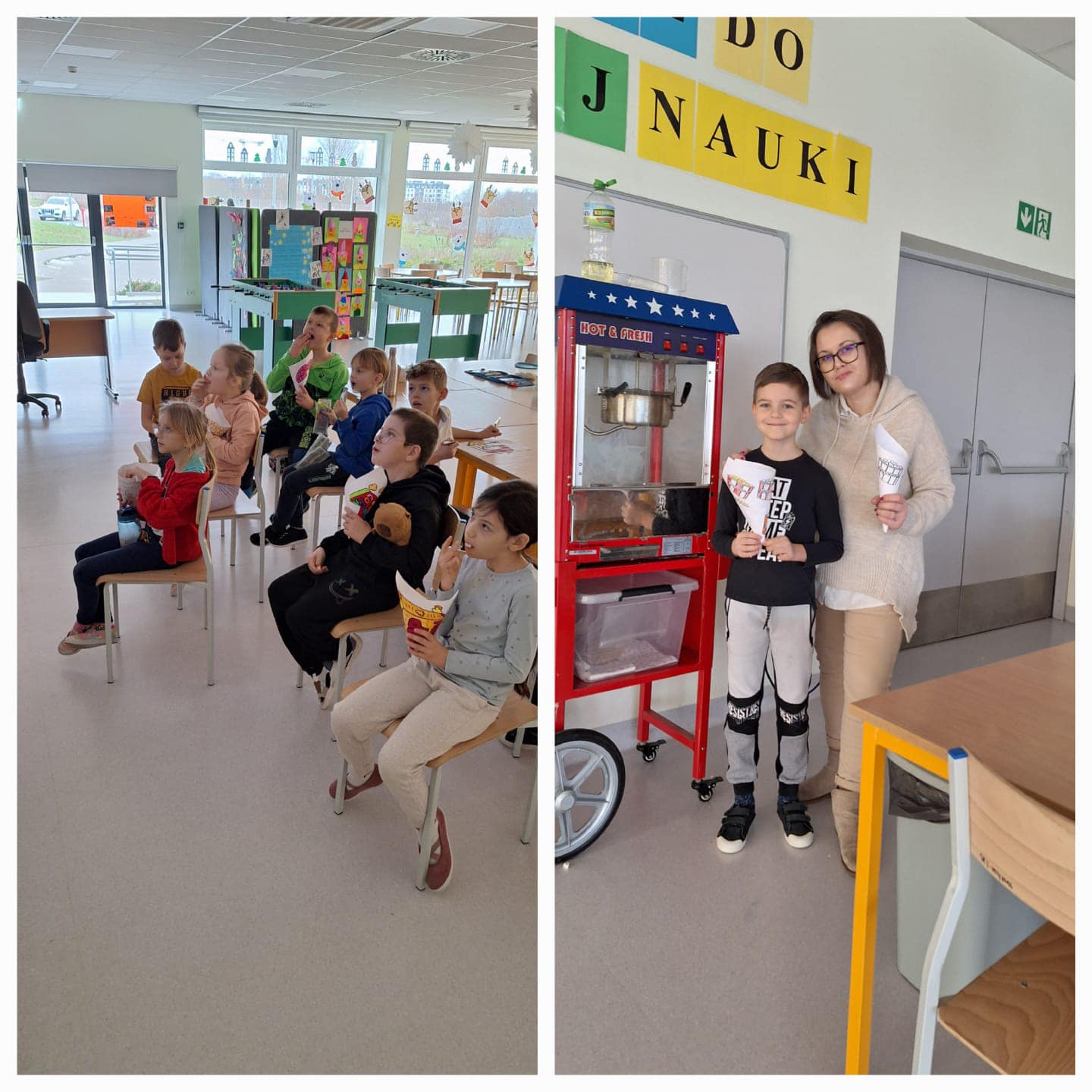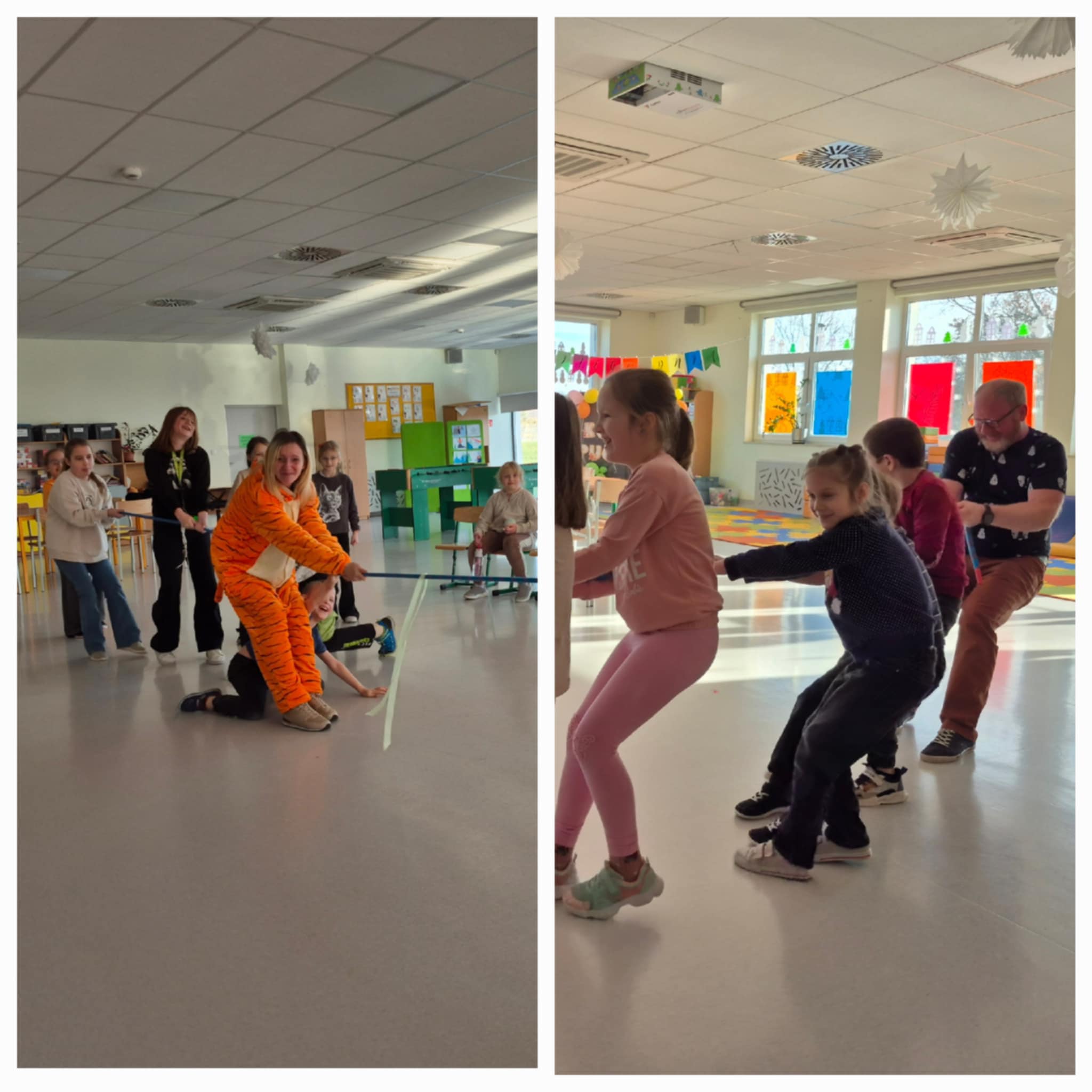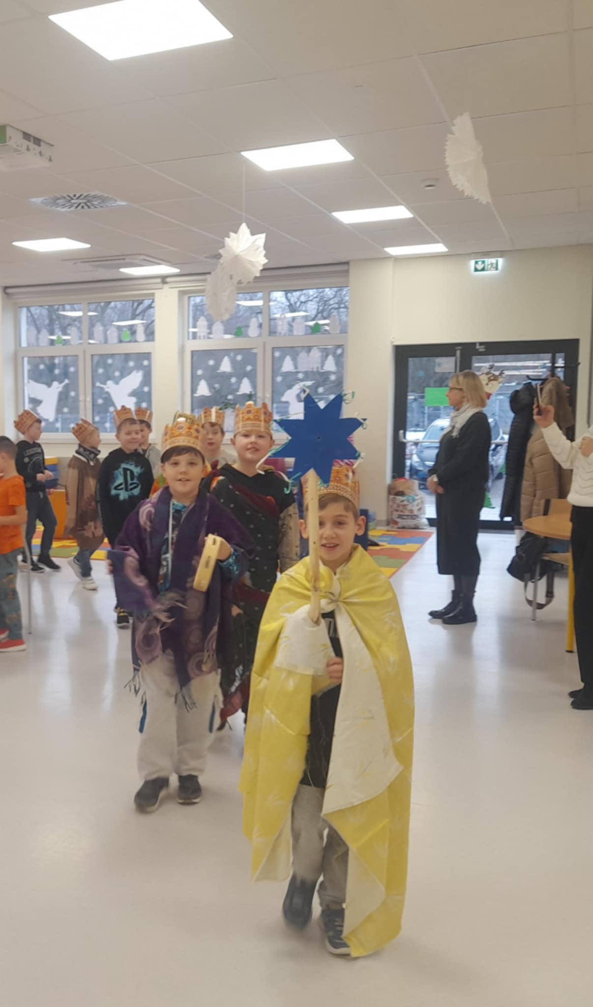 Styczeń powitaliśmy razem z Orszakiem Trzech Króli; rozmawialiśmy o planach i postanowieniach noworocznych. Chociaż brakowało śniegu za oknem, to nie przeszkodziło nam w dobrej zabawie. Wiele radości sprawiła jazda na kartonowych nartach, czy rzucanie się śnieżkami zrobionymi z kartek papieru. Wyjątkowym czasem był okres karnawału - pełen muzyki, tańców i zabawy. Poznaliśmy zwyczaje i tradycje karnawałowe zarówno w Polsce, jak i na świecie. Ciekawym punktem był też świetlicowy konkurs, pt.,, Śpiewać każdy może”. W styczniu obchodziliśmy także Dzień Babci i Dziadka, dla których wykonaliśmy laurki i upominki. Pamiętaliśmy również o naszych Seniorach z Klubu Seniora w Kowalach. Nie zabrakło okazji do głębszego poznania naszego regionu czyli Kaszub. Zastanawialiśmy się dlaczego ludzie zmieniają miejsce zamieszkania oraz jakie tradycje i święta przybyły do Polski razem z migrantami.