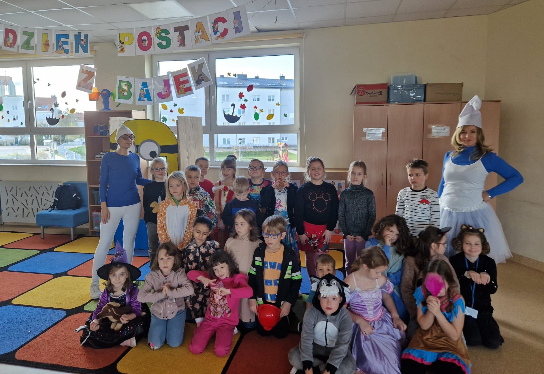 Listopad również obfitował w wiele ciekawych wydarzeń. Z okazji Światowego Dnia Postaci z Bajek nasza świetlica zamieniła się w piękny bajkowy świat. Mieliśmy możliwość przebrać się za ulubioną postać, a podczas zabaw skosztowaliśmy smerfnego soku z rąk "prawdziwych" Smerfów.