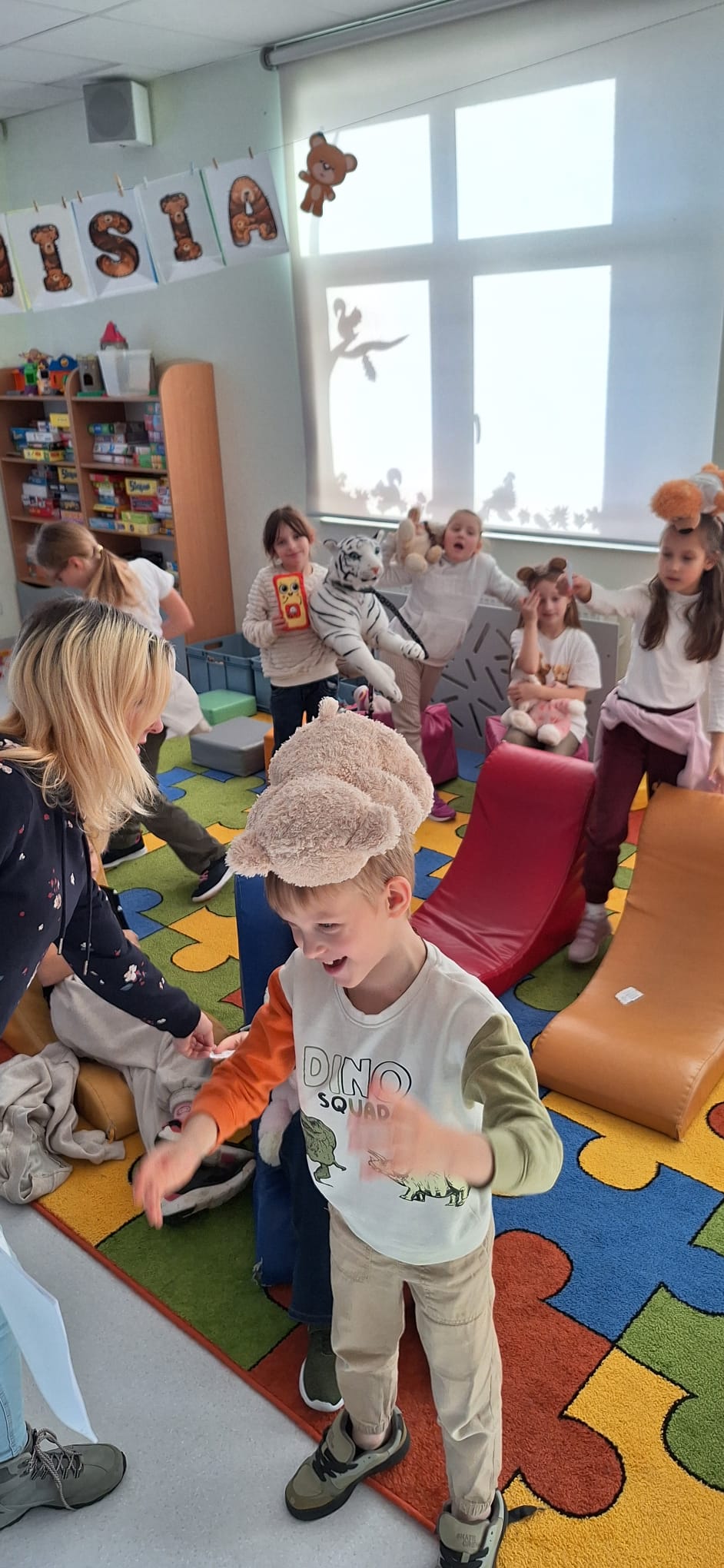 Październik obdarzył nas piękną, jesienną pogodą w związku z czym często wychodziliśmy na boisko i place zabaw. Ruchowo rozwijaliśmy się także podczas zajęć programowych w salach. Wtedy również rozwiązywaliśmy łamigłówki i kodowanki oraz graliśmy na instrumentach i kształciliśmy poczucie rytmu.