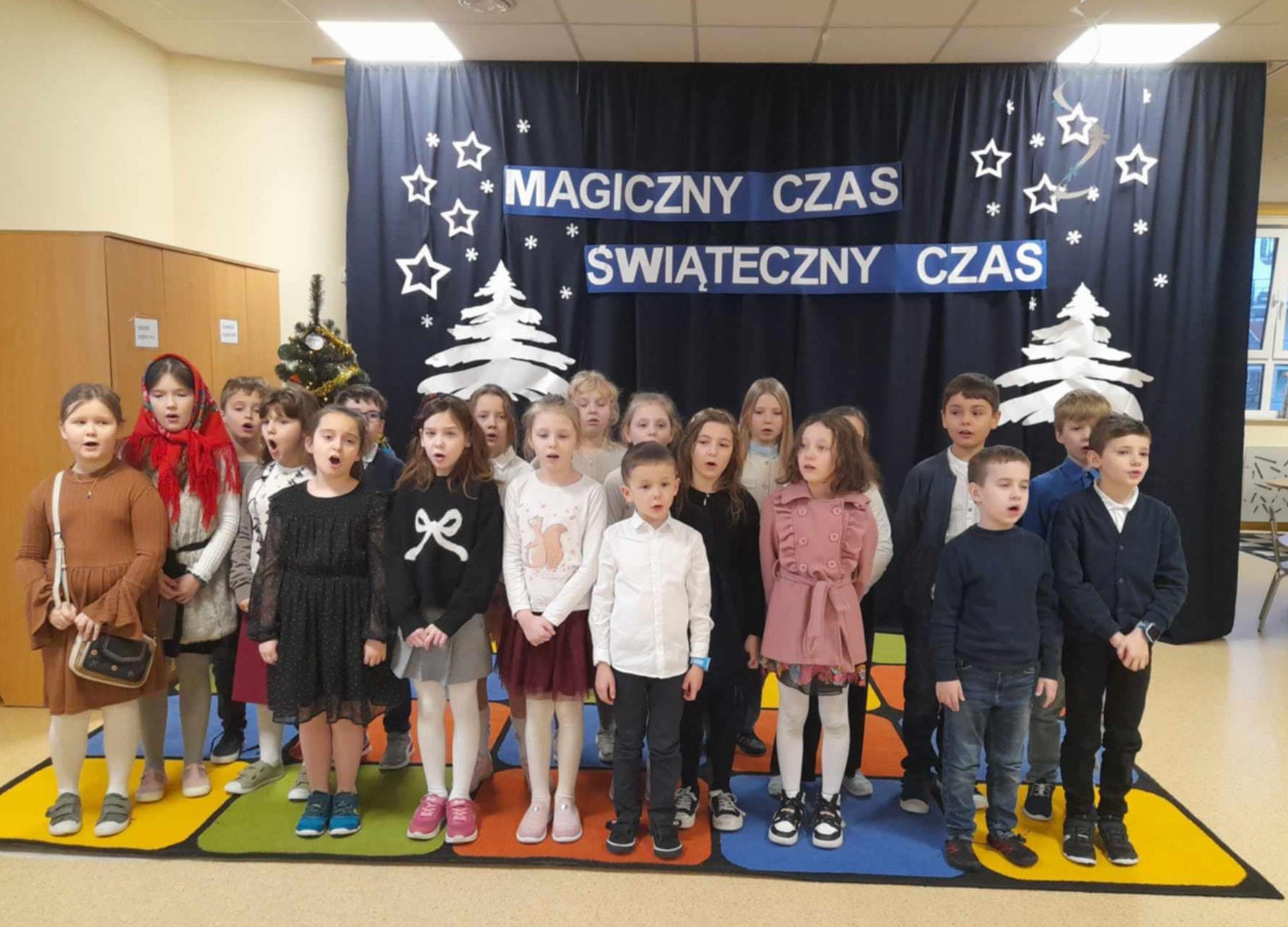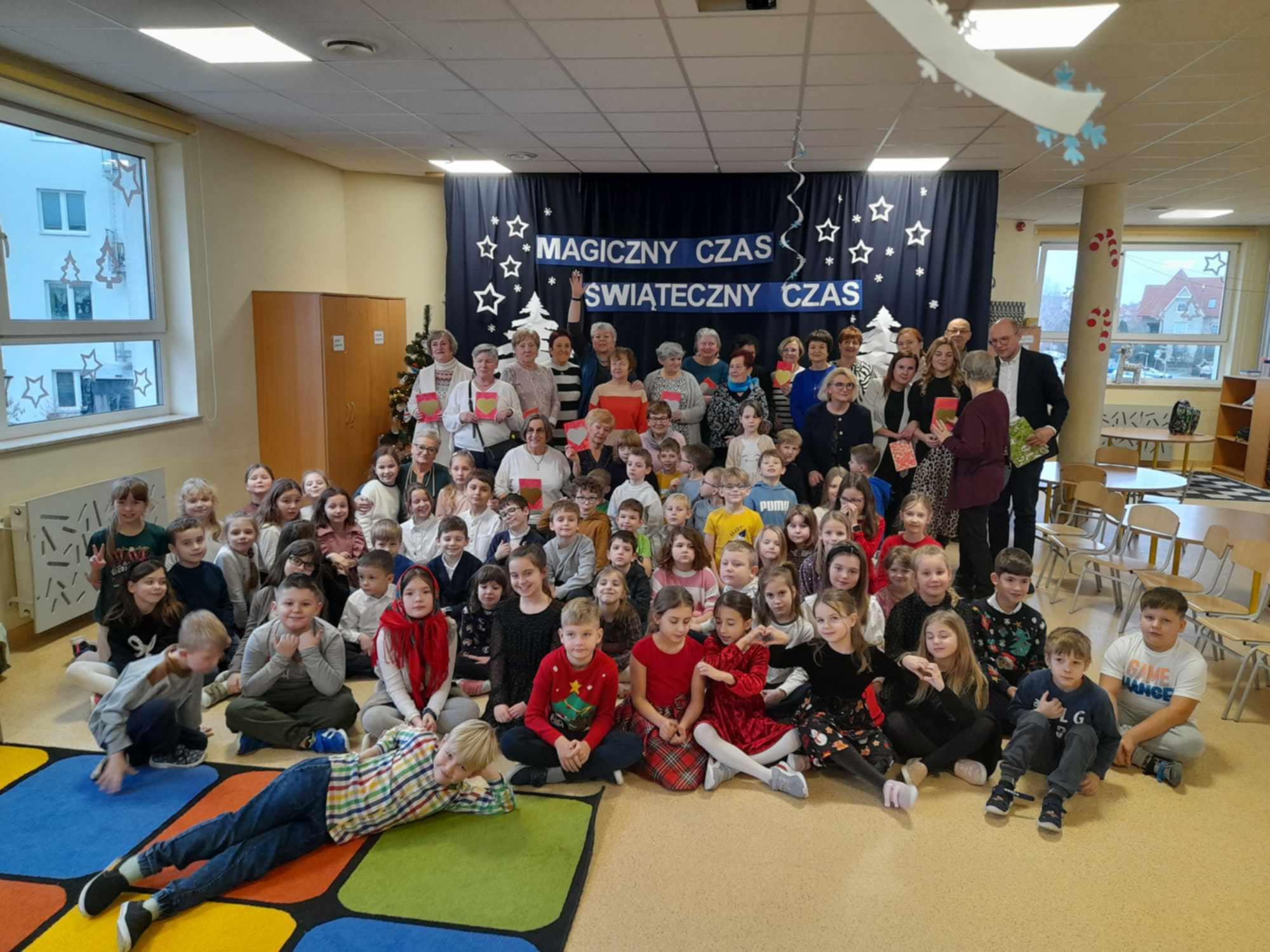 Grudzień minął nam na przygotowaniach do świetlicowego kiermaszu oraz do świąt Bożego Narodzenia. Dekorowaliśmy sale świetlicy, wykonywaliśmy ozdoby do naszych domów oraz kartki z życzeniami dla bliskich nam osób. Tradycyjnie już w przedświątecznym czasie odwiedzili nas święty Mikołaj wraz z elfem obdarowując prezentami i słodyczami.