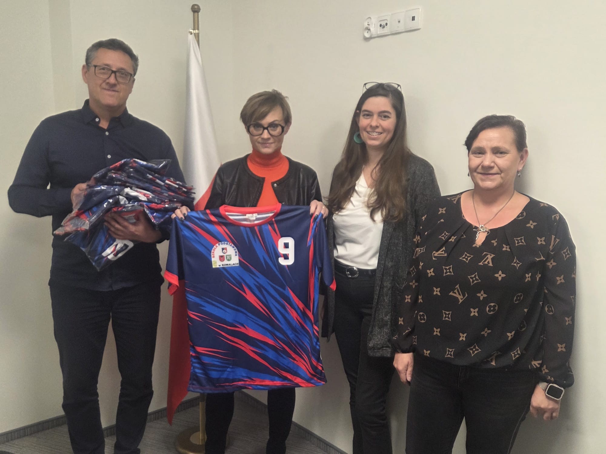 Koszulki trafiły prosto w ręce Pani Dyrektor oraz Pana Piotra Kloski. Życzymy sukcesów!